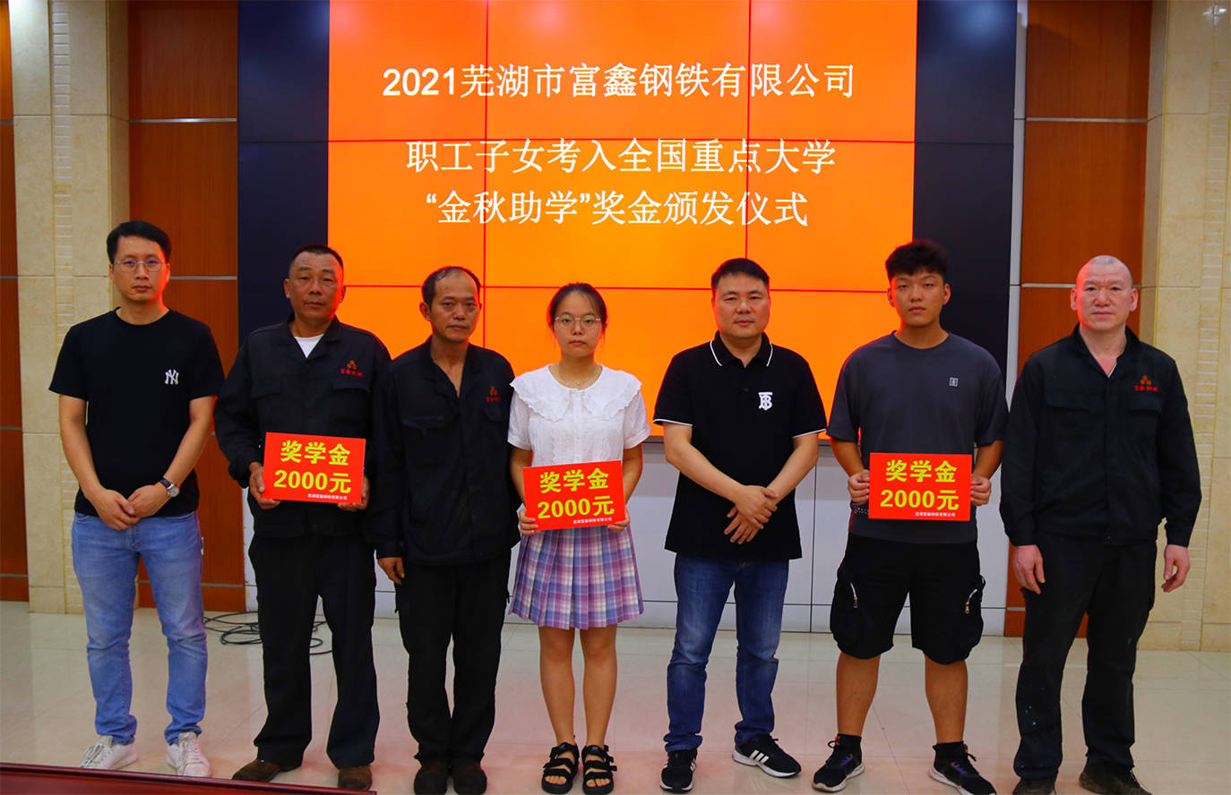 8月11日下午,在蕪湖市富鑫鋼鐵有限公司舉行的2021“金秋助學”獎金發(fā)放儀式上,向今年考取電子科技大學、東南大學、...